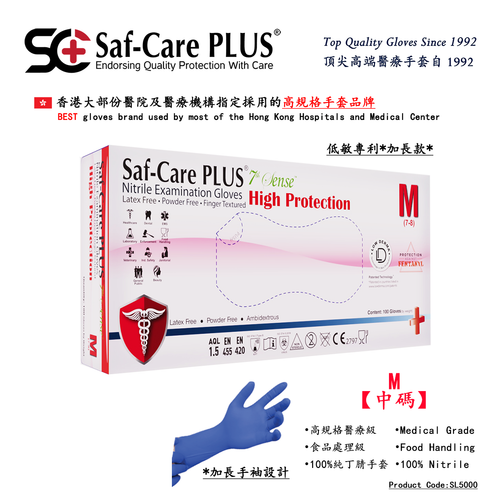 Saf-Care PLUS®加長款*專業防致敏*純丁腈手套 (100/box)